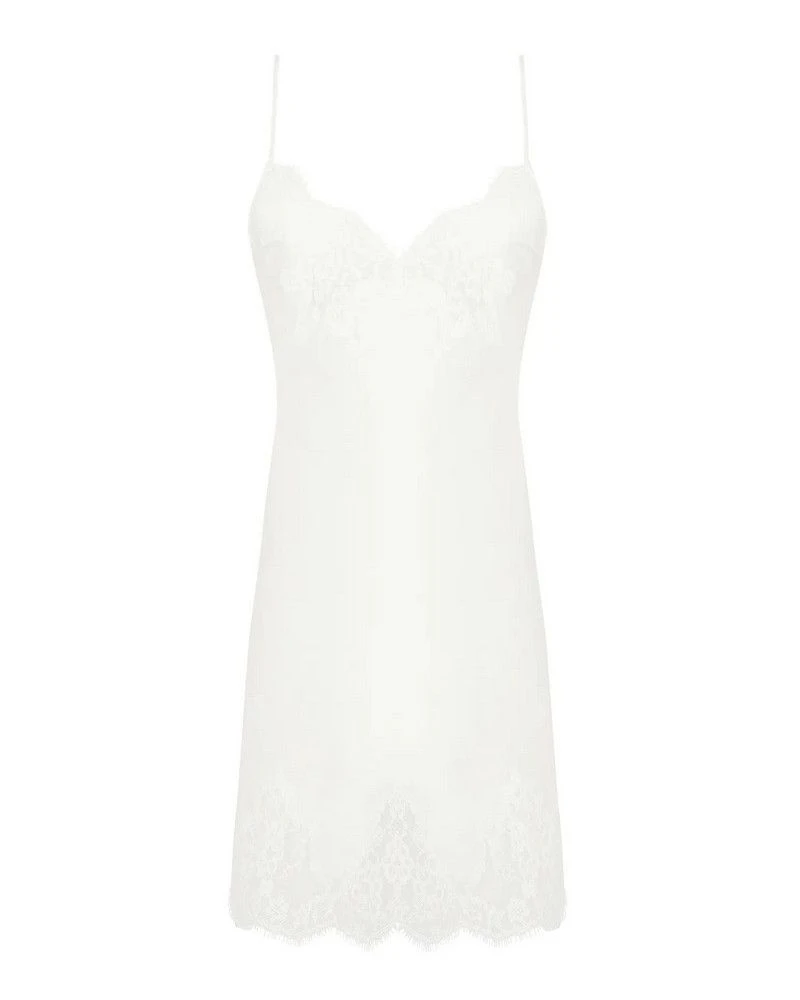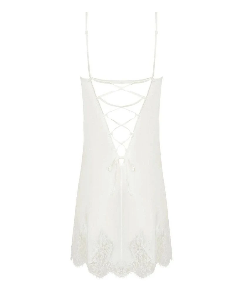 Réalisée dans une soie fluide et délicate, la babydoll caresse la peau avec douceur, créant un effet vaporeux et léger. Les bonnets sont ornés de dentelle fine et de broderies sophistiquées, apportant une touche de féminité et d’élégance.