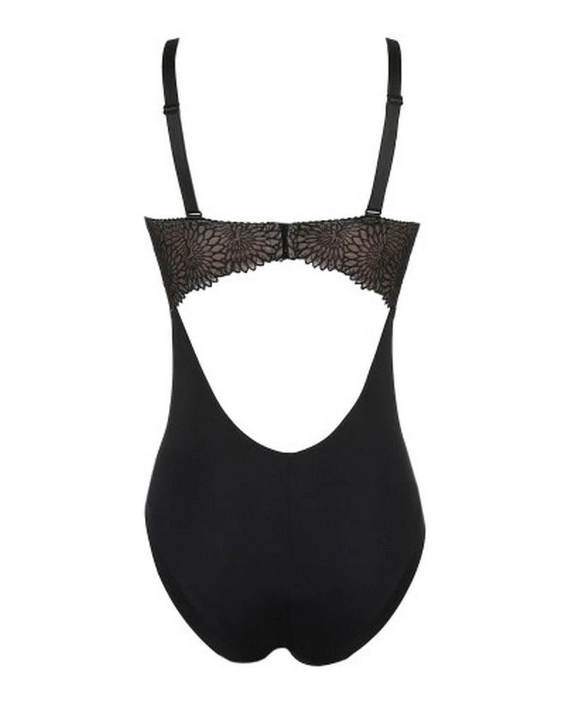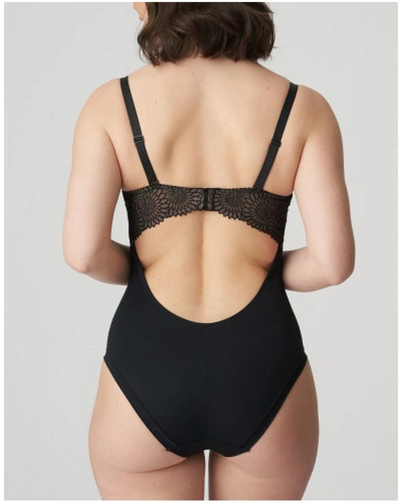Un irrésistible body avec le charme d’un soutien-gorge bustier. Détail tendance : l’élément décoratif graphique sur l’entre-bonnet. Broderie noire avec effet tatouage irrésistible !
