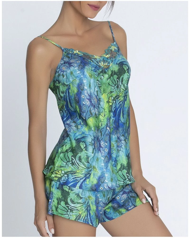 Le caraco Lise Charmel de la collection Grâce Aquatique s’associe parfaitement au short de nuit de la même collection pour vous offrir un style romantique et confortable à porter, tout en féminité.