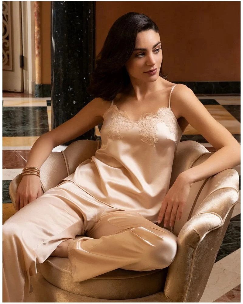 Le caraco Lise Charmel de la collection Splendeur Soie s’associe parfaitement au short de nuit de la même collection pour vous offrir un style romantique et confortable à porter, tout en féminité.