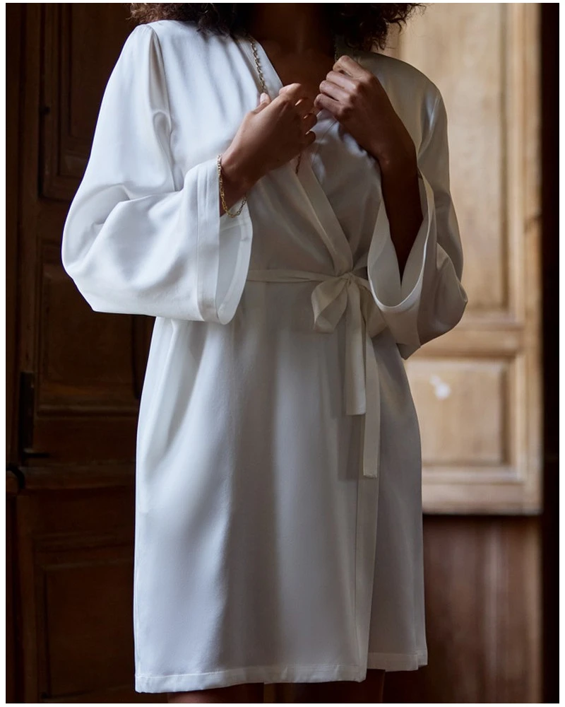 Découvrez la collection de déshabillés de nuit de Marjolaine, une fusion parfaite de luxe et d’élégance. Confectionnés avec des tissus somptueux comme la soie, ces pièces offrent un confort et une sophistication ultimes pour des moments d’indulgence inoubliables.