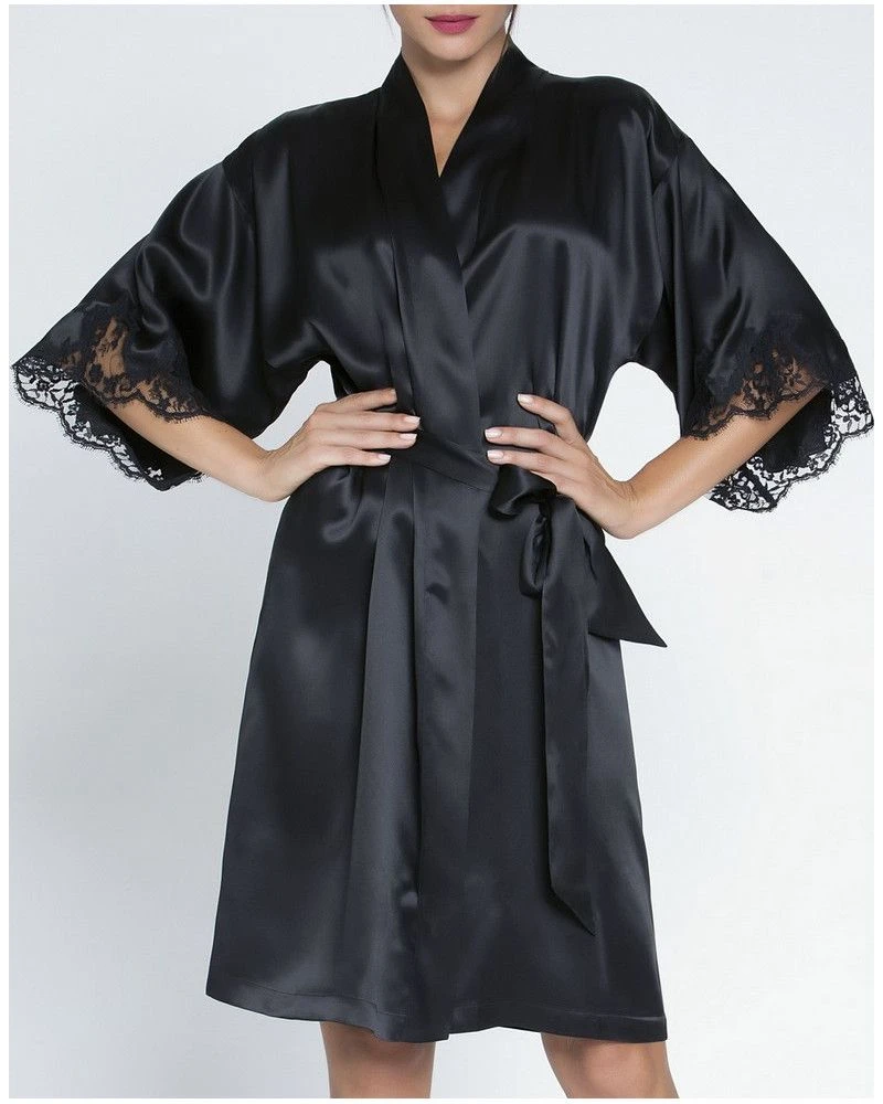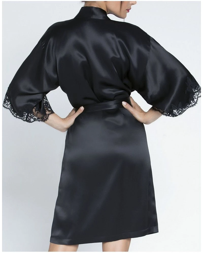 Le déshabillé Lise Charmel de la collection Splendeur Soie propose un joli décolleté en V et un tulle jouant sur la transparence, pour un ensemble harmonieux et une silhouette sublimée.