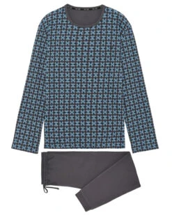 Pyjama Long 100% Coton Athena Ecopack Sérigraphie (Bleu/Noir)
