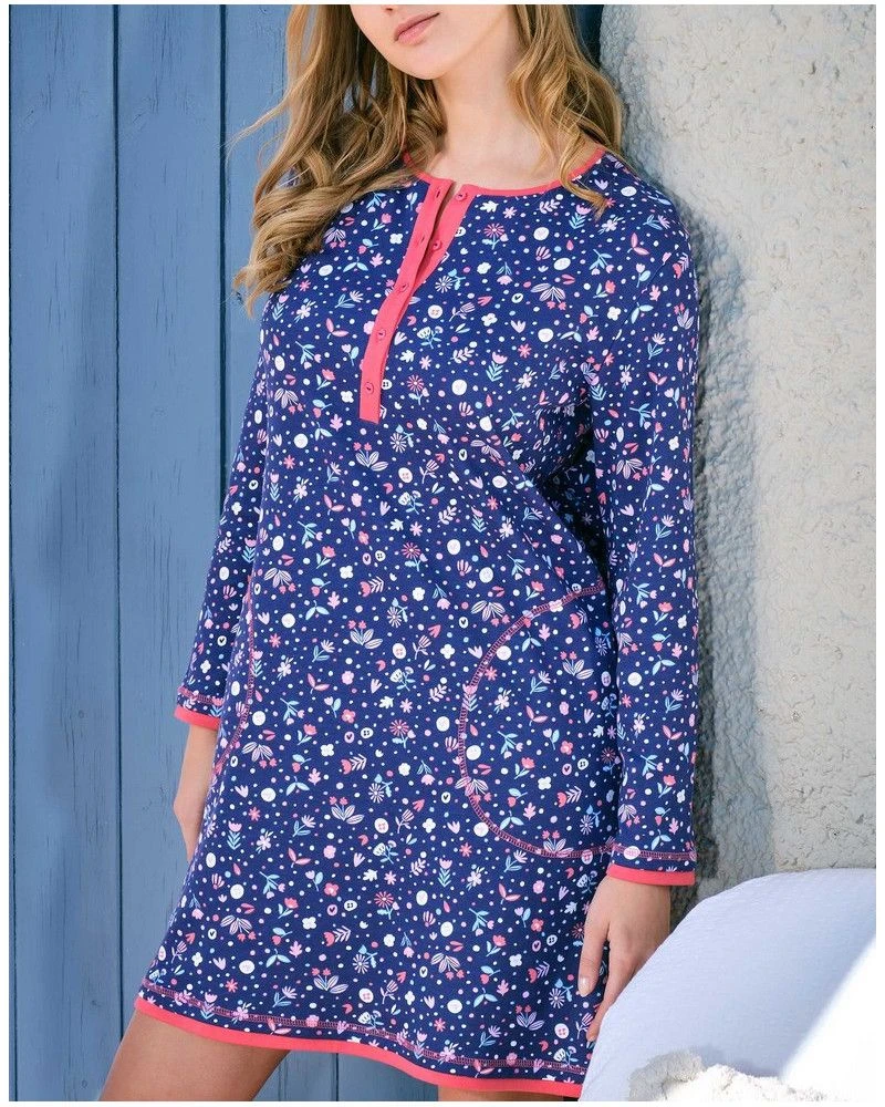 La liquette pour femme fleurie en 100% coton de la marque Massana et son motif floral délicat apporte une touche de fraîcheur et de féminité, idéal pour se détendre avec style à la maison ou pour des nuits douces et paisibles.