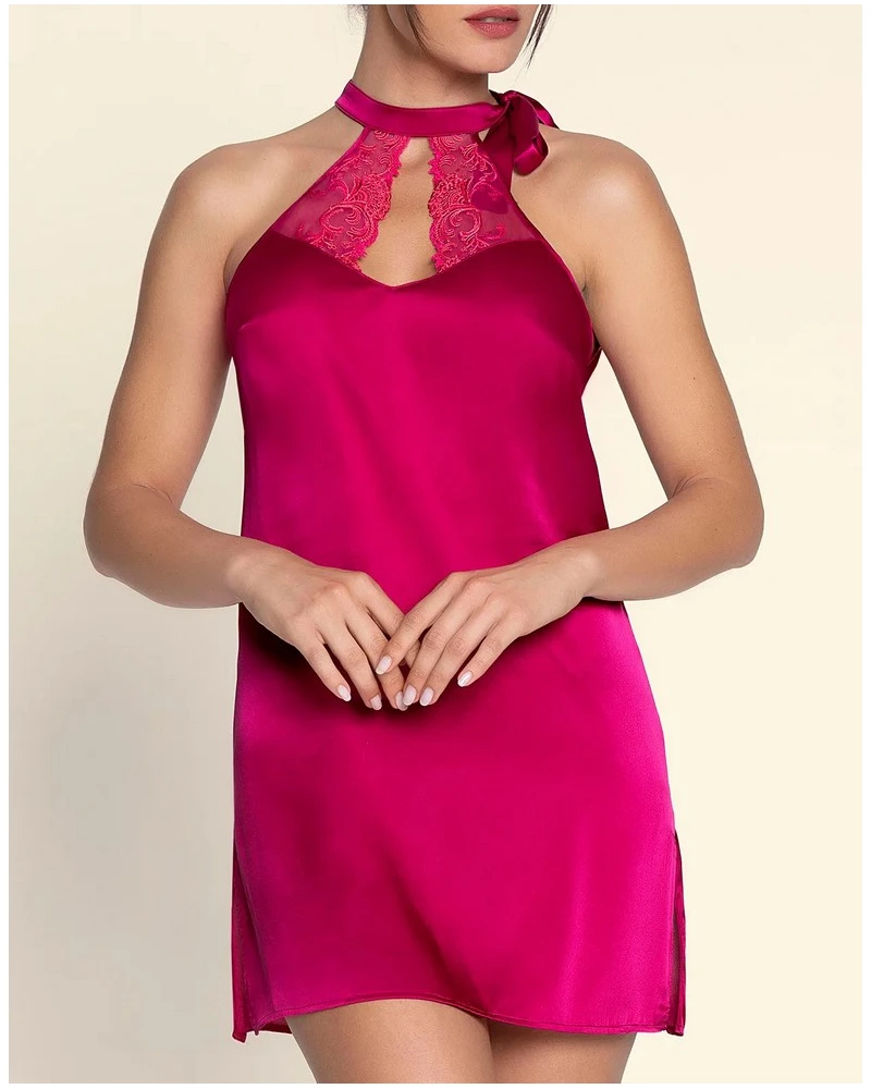 La nuisette sexy Splendeur Soie de Lise Charmel, en coloris Splendeur Carmin, marie à la perfection la sensualité de la coupe et la noblesse des matières. Confectionnée en soie délicate et ornée de broderies florales raffinées sur une fine dentelle de Calais, elle sublime la silhouette avec légèreté et glamour.