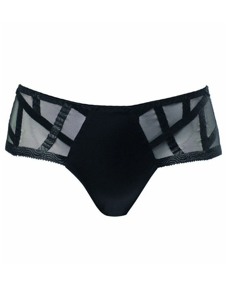 Le shorty de la collection Série par Louisa Bracq propose une forme échancrée et légère agrémentée d’un jeu de transparence et de designs graphiques et osés. La parfaite alliance de séduction et de confort.