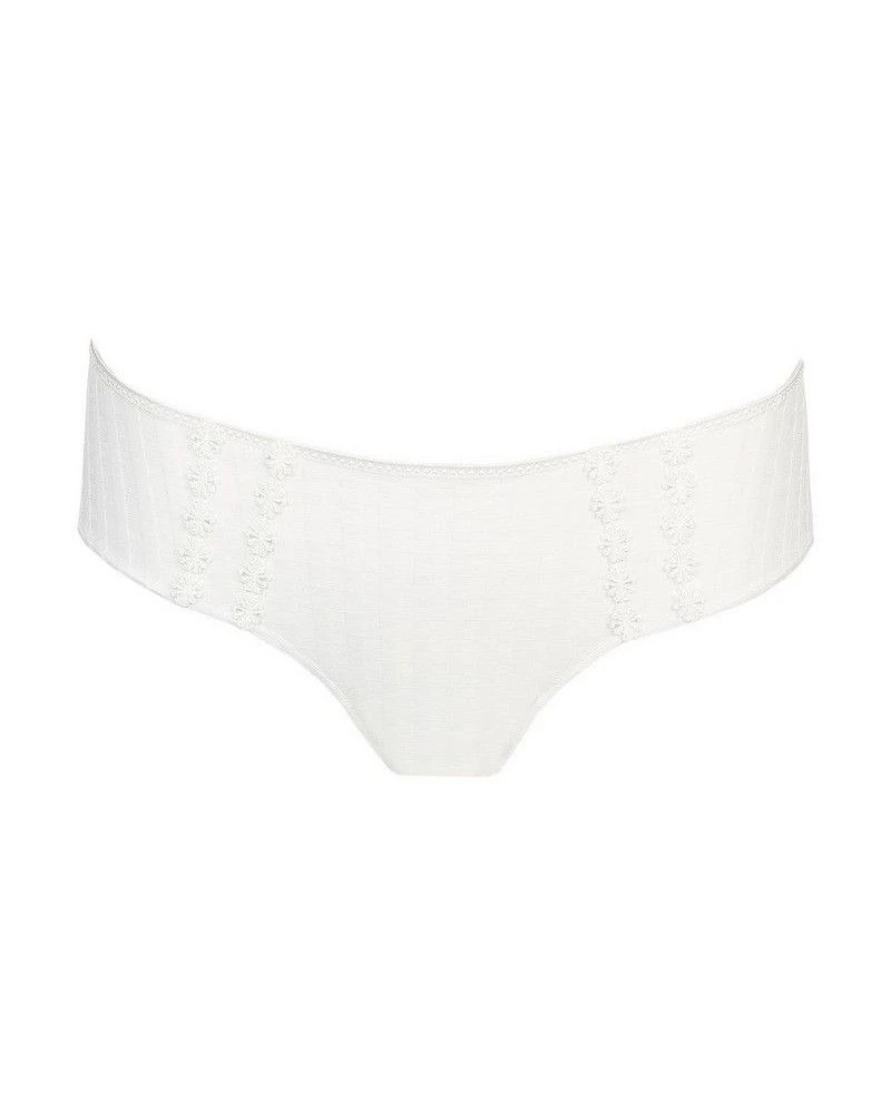 Ce shorty Marie Jo Avero est joliment échancré sur le devant, comme les slips brésiliens, et découvre la moitié des fesses. La taille est basse. Entièrement opaque et orné de deux rangées de petites fleurs sur le devant.