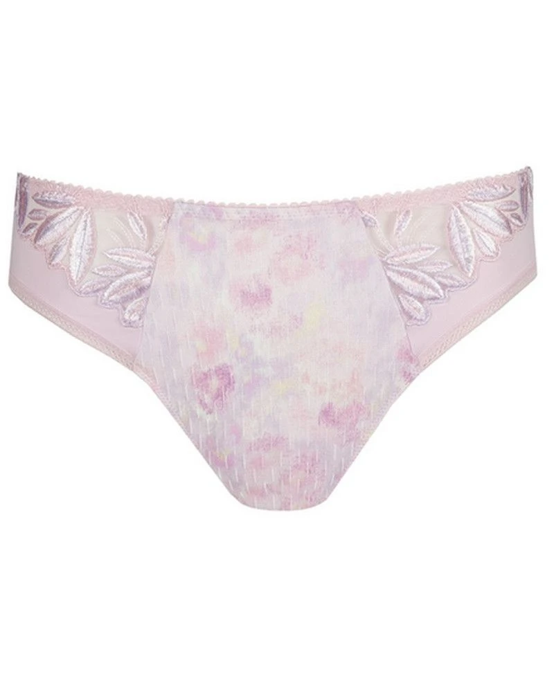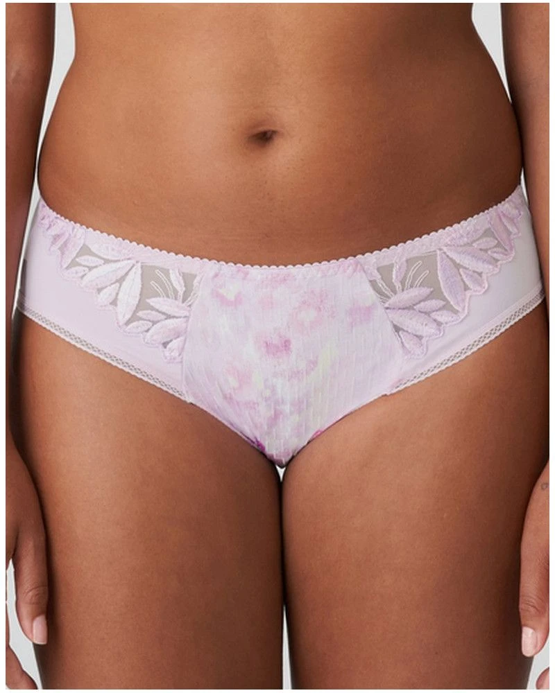 Slip brésilien au tissu opaque orné de broderies chics au niveau des échancrures. Sweet Violet est une impression numérique dans un lilas vibrant avec un peu de jaune ensoleillé ici et là. Féminin, frais et tendance !