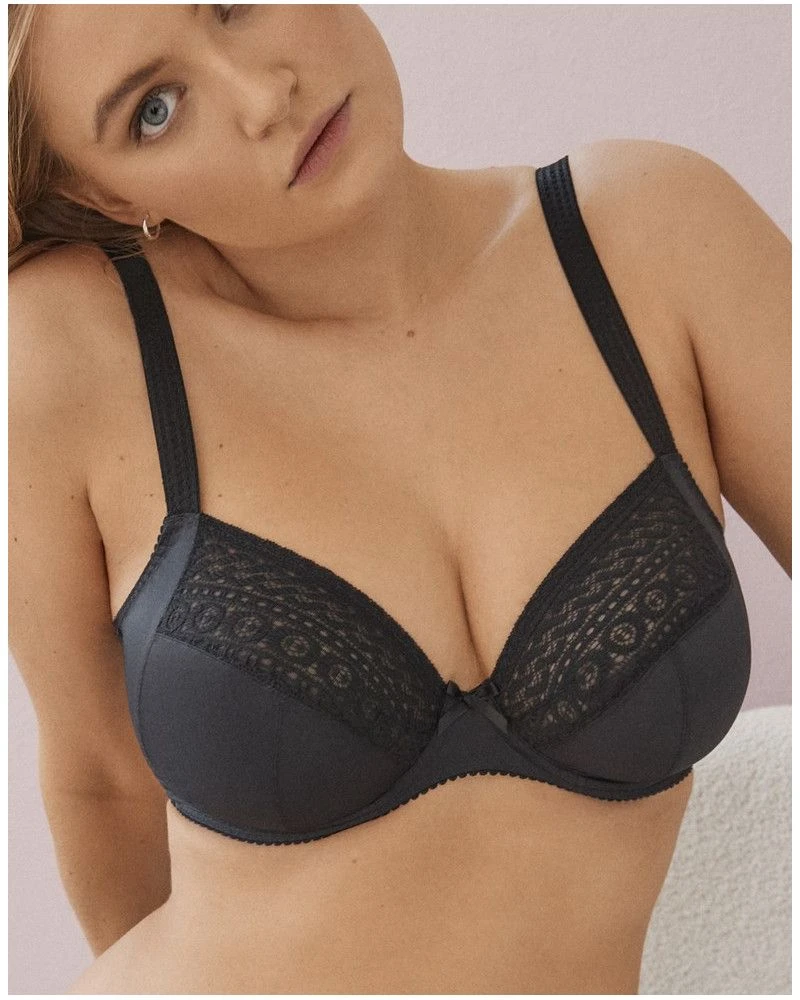 Ce soutien-gorge balconnet crée un décolleté sexy et garantit un confort optimal. Le bas des bonnets est lisse et opaque, tandis que le haut affiche une dentelle qui épouse parfaitement le décolleté, en le sublimant. Dentelle tendance en noir intemporel : que demander de plus ?