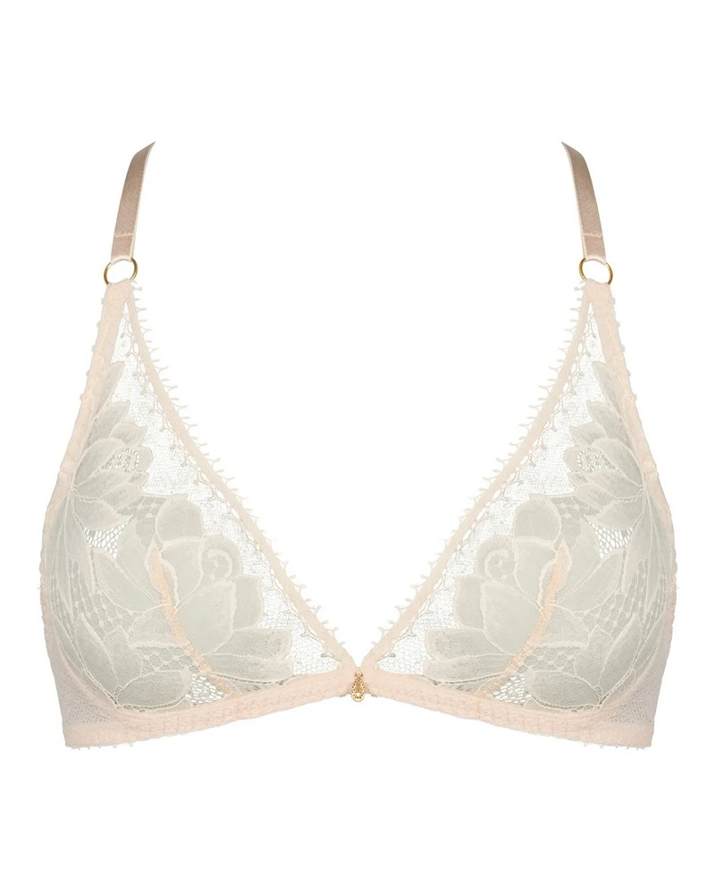 Le soutien-gorge triangle Aubade Flawless Love mêle la finesse de la dentelle Leavers de Calais et une résille graphique pour une touche d’élégance. Les détails dorés et le design audacieux créent une silhouette féminine et raffinée.