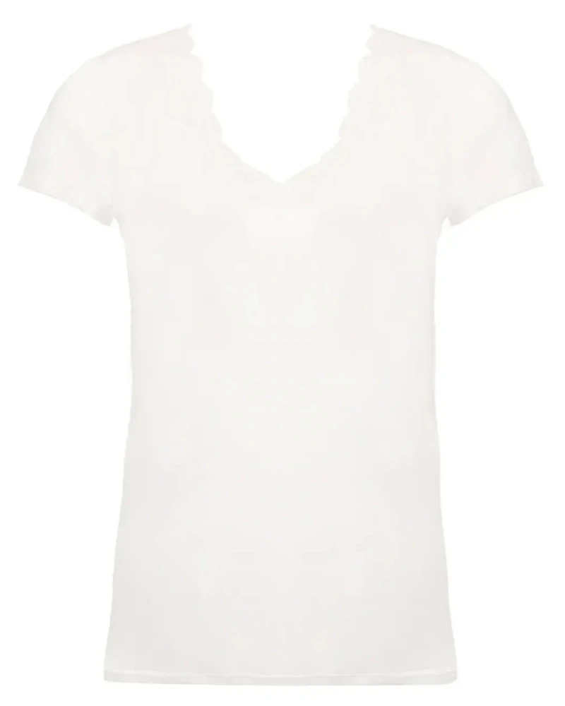 Le Tee shirt Manches courtes Antigel de la collection Simply Perfect est composé d’un col V en dentelle jacquard et d’une matière souple et légère.