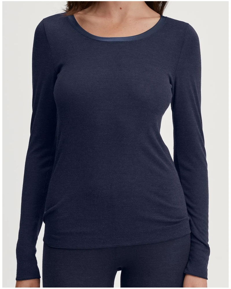 Le top à manches longues True Confidence de la marque Calida est le mélange idéal entre laine de mérinos et soie. Ces matières sont connues pour être thermorégulantes, ce qui vous permettra d’être bien au chaud tout l’hiver. Orné de liserés en satin, ce top offre un look chic et confortable.